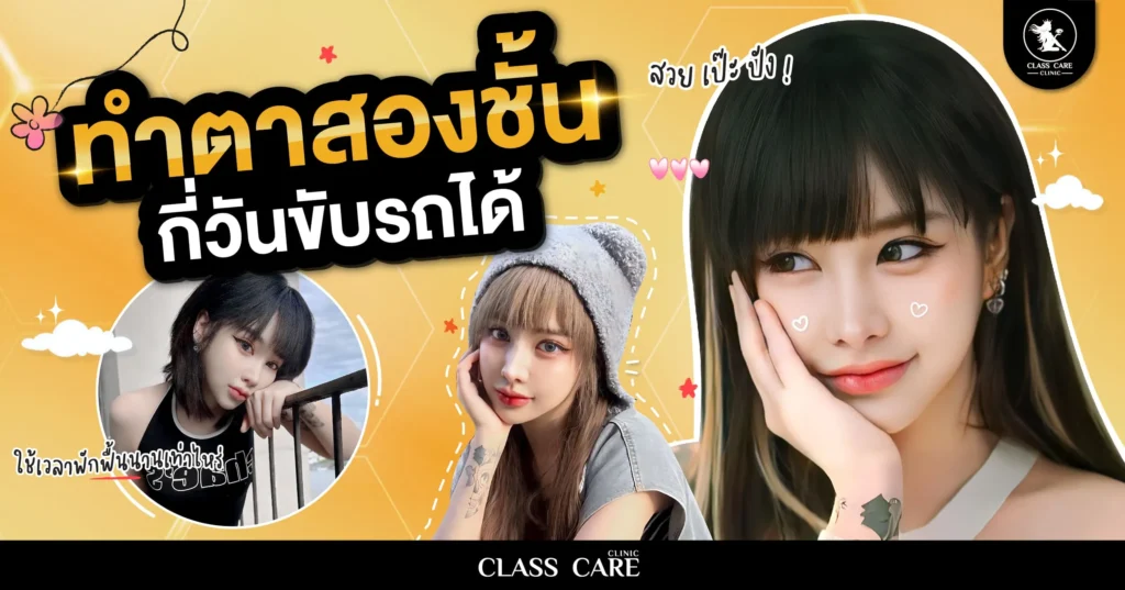 ถ้าเพื่อน ๆ ดูแลตัวเองดีเท่าไหร่ก็จะช่วยให้ฟื้นตัวเร็วขึ้นและกลับมาขับรถได้เร็วขึ้นด้วยนะคะ ถ้าเพื่อน ๆ อยากรู้วิธีดูแลตัวเองหลังทำตาสองชั้นแบบถูกต้อง คลิกลิงก์นี้เลยค่ะ เพื่อดูข้อมูลเพิ่มเติมและคำแนะนำจากคุณหมอที่ Classcare Clinic