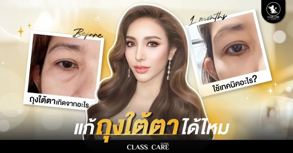 เพื่อน ๆ ที่เริ่มมีปัญหาถุงใต้ตา หรือรู้สึกว่าดูไม่สดชื่นจากใต้ตาบวม เมื่ออายุมากขึ้น ไม่ต้องห่วงค่ะ! ถามว่าแก้ถุงใต้ตาได้ไหม? ตอบเลยว่าได้แน่นอนค่ะ ถุงใต้ตาจะแบ่งเป็น 2 ประเภทหลัก ๆ คือ ถุงใต้ตาแท้ ที่เกิดจากการสะสมของไขมัน หรือผิวหนังหย่อนคล้อย กับถุงใต้ตาเทียมที่เกิดจากการบวมชั่วคราวค่ะ วันนี้ Classcare Clinic ได้รวบรวมวิธีแก้ไขปัญหาถุงใต้ตามาให้เพื่อน ๆ แล้วค่ะ!