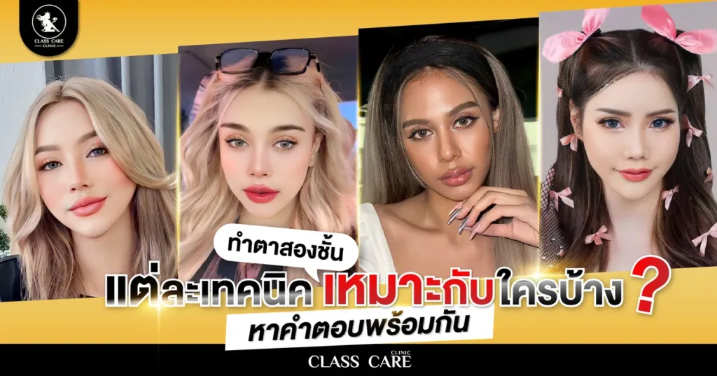 เพื่อน ๆ ที่อยากมีตาสวยคงกำลังสงสัยว่า การทำตาสองชั้นเเต่ละเทคนิค แบบไหนจะเหมาะกับตัวเองใช่ไหมคะ? จริง ๆ แล้วแต่ละเทคนิคก็จะเหมาะกับปัญหาของตาที่แตกต่างกันไป เช่น กรีดสั้นแผลมินิ, กรีดยาว, ยกกระชับกล้ามเนื้อตา, เปิดหัวตา หรือเติมไขมัน ซึ่งเเต่ละเทคนิคจะเหมาะกับใครบ้างนั้น Classcare Clinic ได้รวบรวมข้อมูลมาให้เเล้วค่ะ